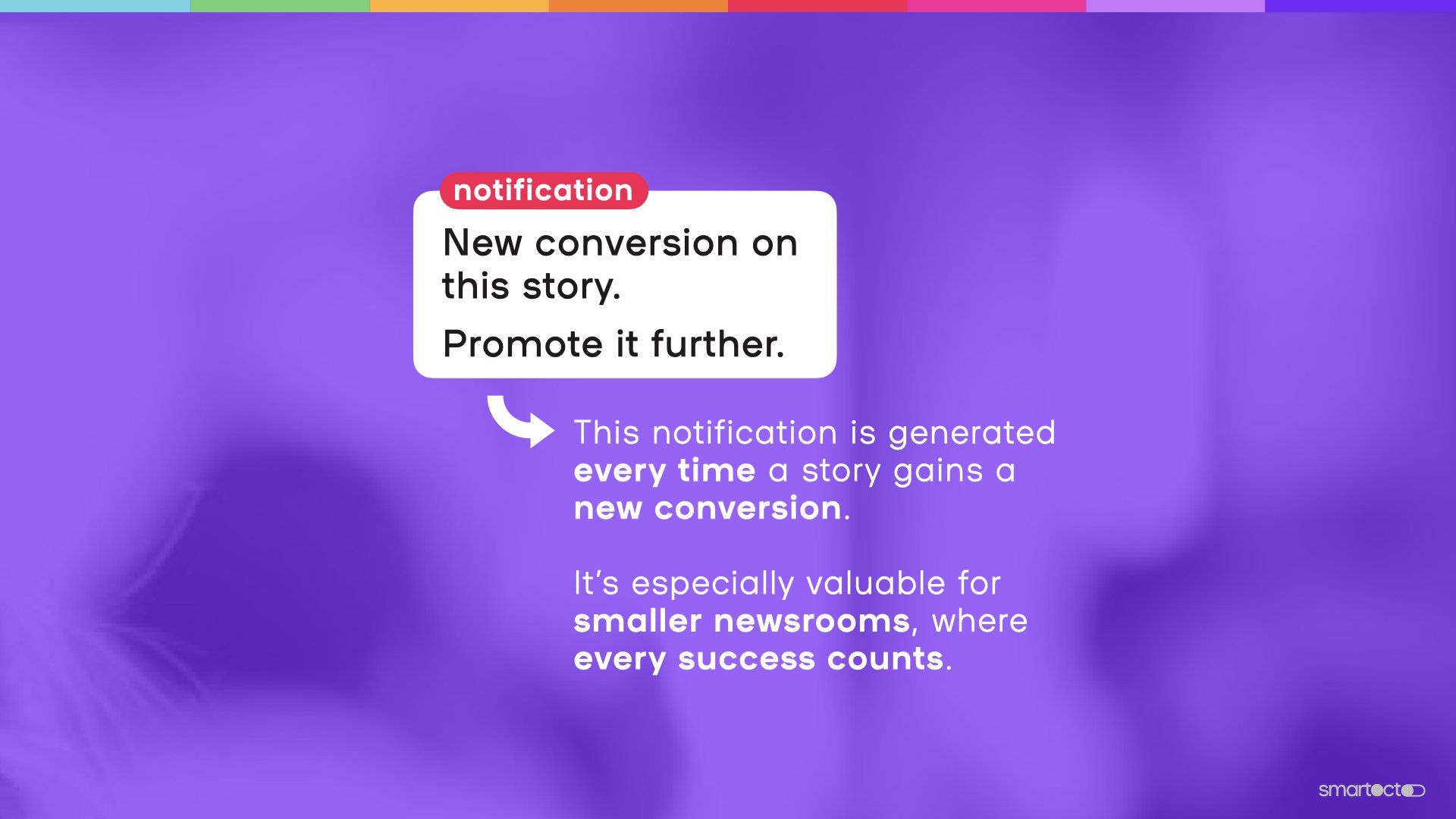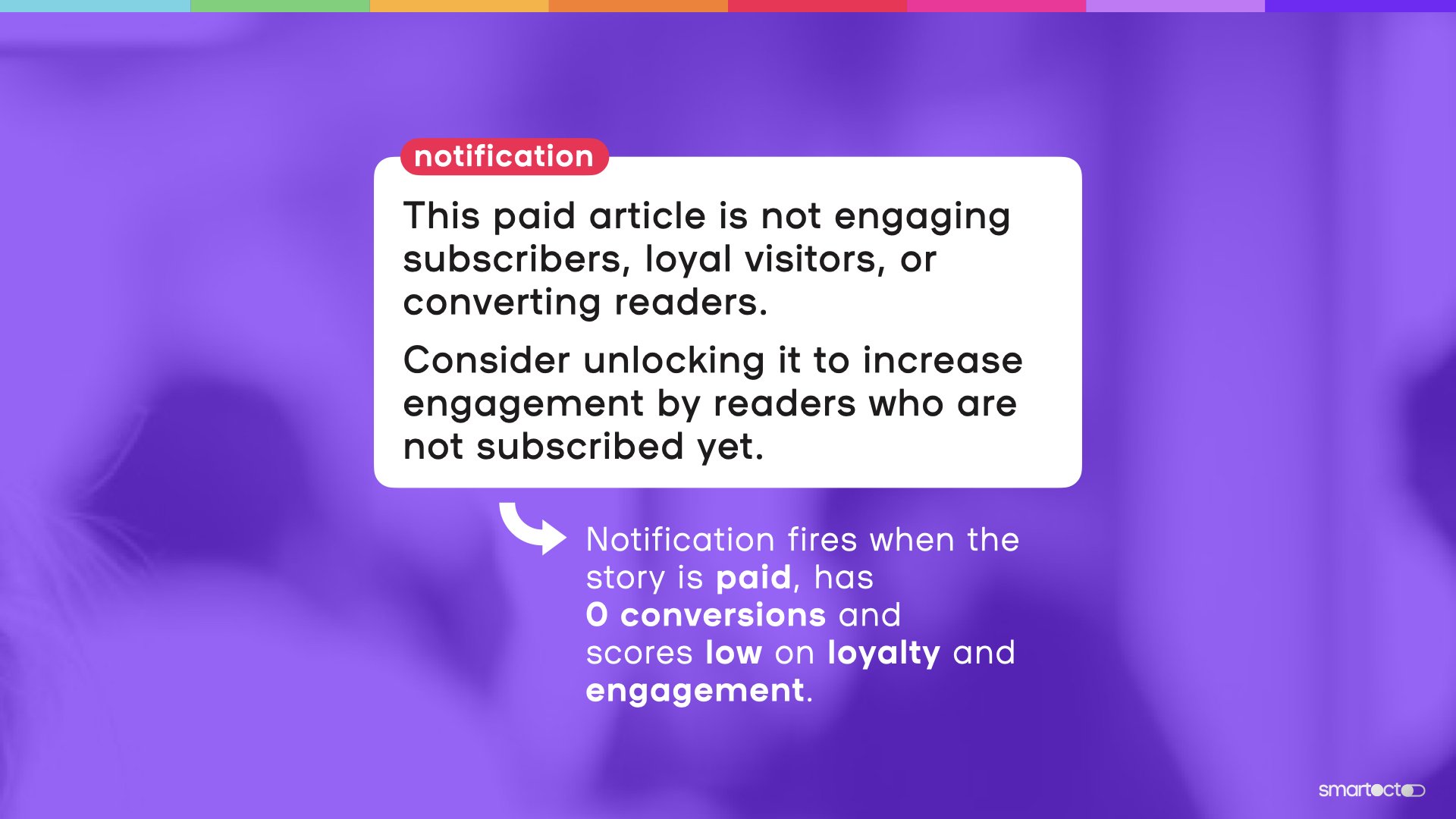 Our experience tells us that notifications play a key role in subscriber acquisition. The goal for us is to ensure that editors are making the right adjustments and enhancements - ones that lead to higher subscription conversion rates - and our system of smart notifications ensures that you see the prompts and actions at precisely the right moment.