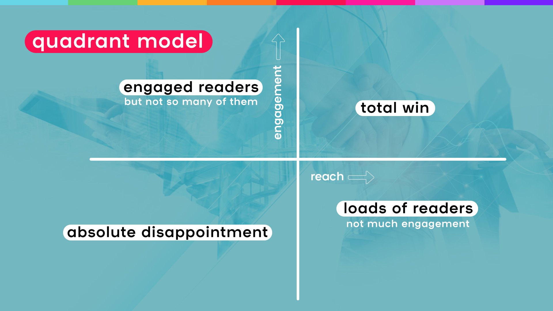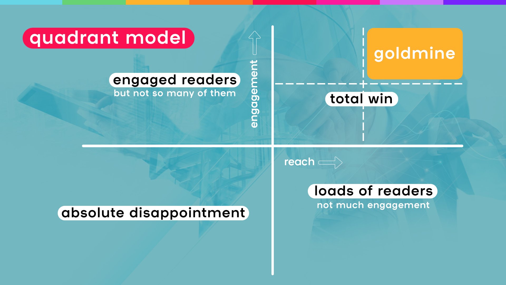 If you have a look in the Insights part of our tool, you’ll have the option to see your content performance through a cool visualisation: the quadrant model.