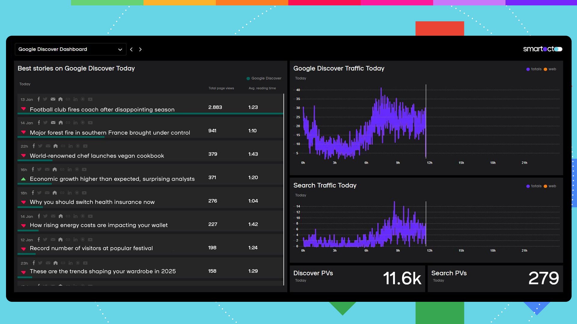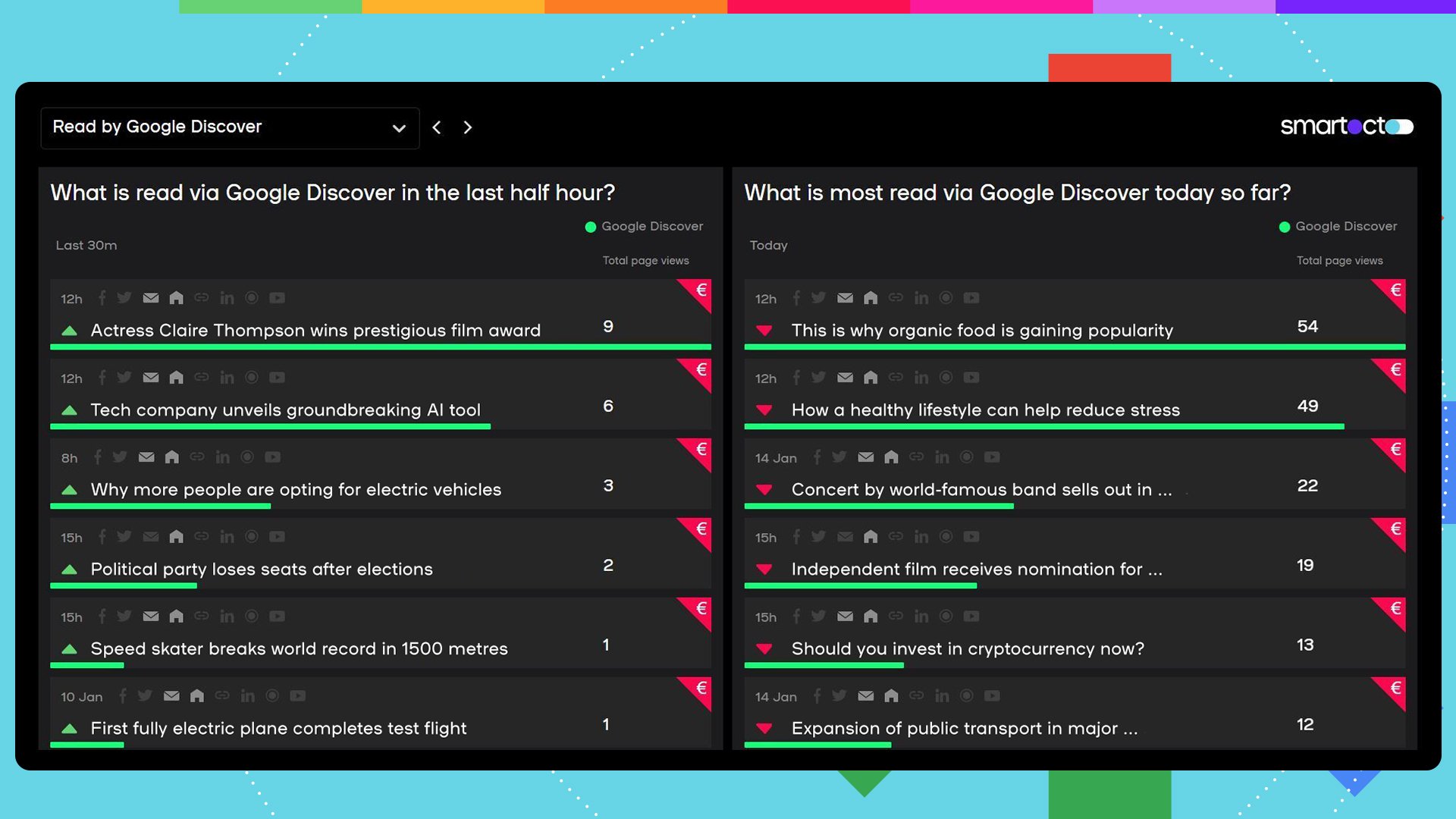 Google curates the feed using an algorithm and personalises it based on users’ behaviour across the web and apps. It features current content indexed by Google in accordance with their content policies. Traffic via Google Discover to news websites is growing in the last couple of years, a data study of smartocto shows: