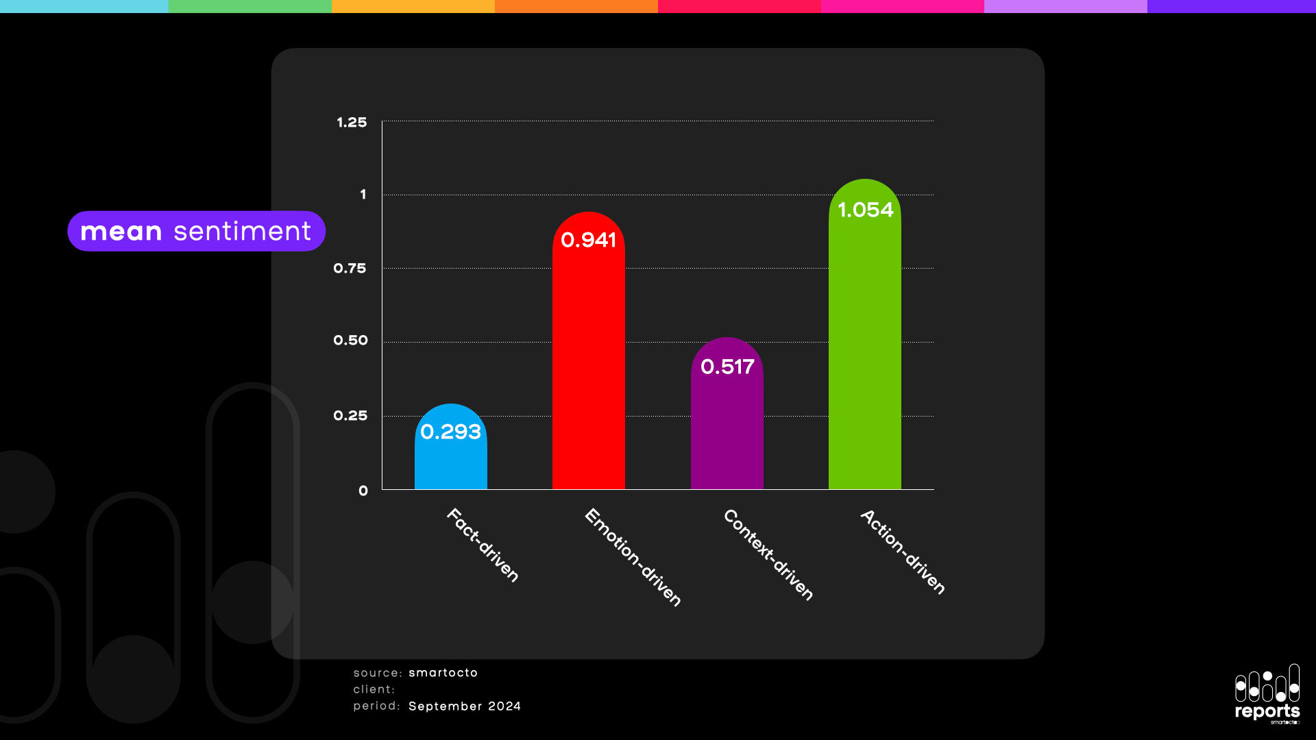 The main takeaway here is, then, not that emotion-driven and action-driven axes of the User Needs Model 2.0 somehow determine the higher positive sentiment of the news, but that they have a potential to do so when chained as follow-ups to fact and context-driven articles in an appropriate editorial strategy.