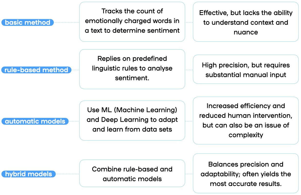 Sentiment analysis, a specialised area of natural language processing (NLP), enables companies to identify the emotional tone embedded within text, whether it’s positive, negative, or neutral. Sentiment analysis integrates data mining, machine learning (ML), artificial intelligence (AI), and computational linguistics to evaluate and classify emotions expressed in text (see here, for example). The process involves more than just detecting sentiment; it also measures the intensity of the sentiment and might attempt to identify the subject and the opinion holder within the text.