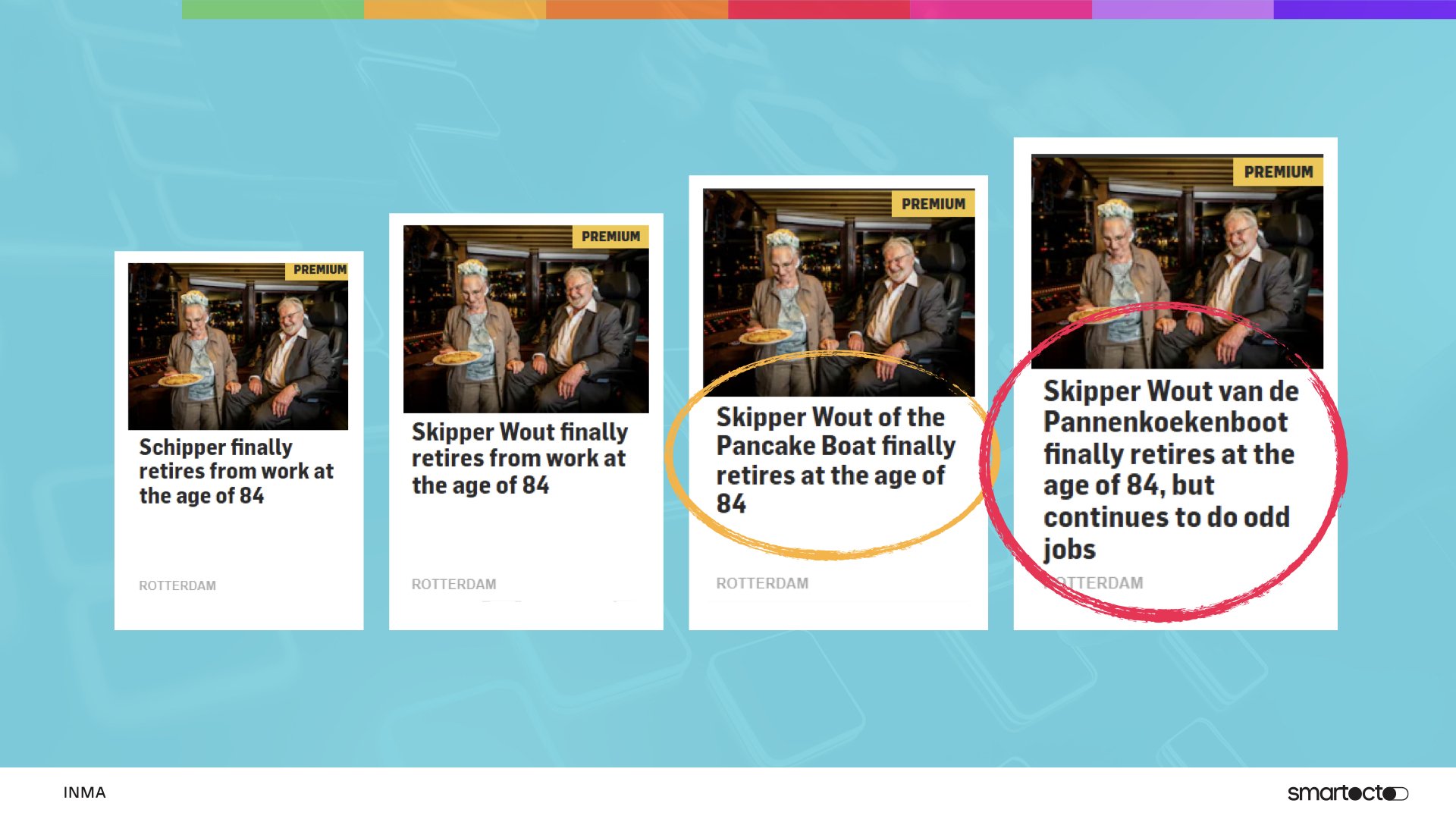 Testing different headlines for an article is one of the most effective actions a newsroom can take to ensure articles are read more widely. The (loyalty) click-through rate not only highlights the appeal of one particular story over others, but a clear title also sets the right expectations for the target audience. And, once you’ve discovered the best headline option, it’s not just your website that will benefit: it will also be displayed across other channels, such as social media and search engines, giving you a much-needed edge over the competition.