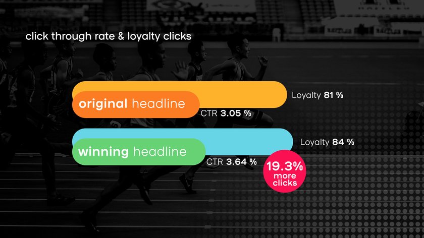 A previous data study by smartocto revealed that winning headlines receive, on average, nearly 20% more clicks than the original, even when including articles where the original headline performed better. Here are the results from an analysis of 9,000 headline tests across 57 media titles, which by the way always takes loyalty into account.