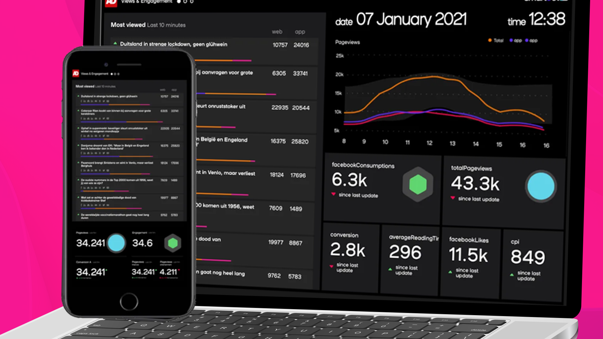 With Waves you can build and configure your dashboards exactly as you wish. You decide the data that appears, how it’s presented, and how it supports each role in the newsroom.