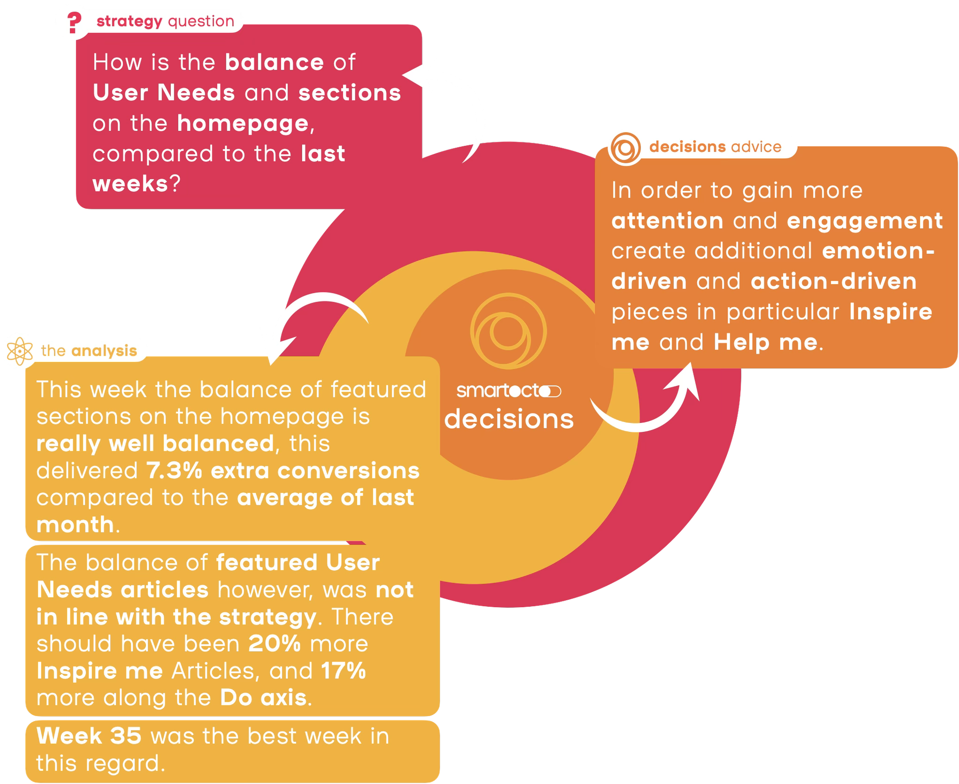Smartocto Decisions acts as an intelligent newsroom assistant that reads and interprets data, detects patterns, and translates them into clear and useful recommendations.