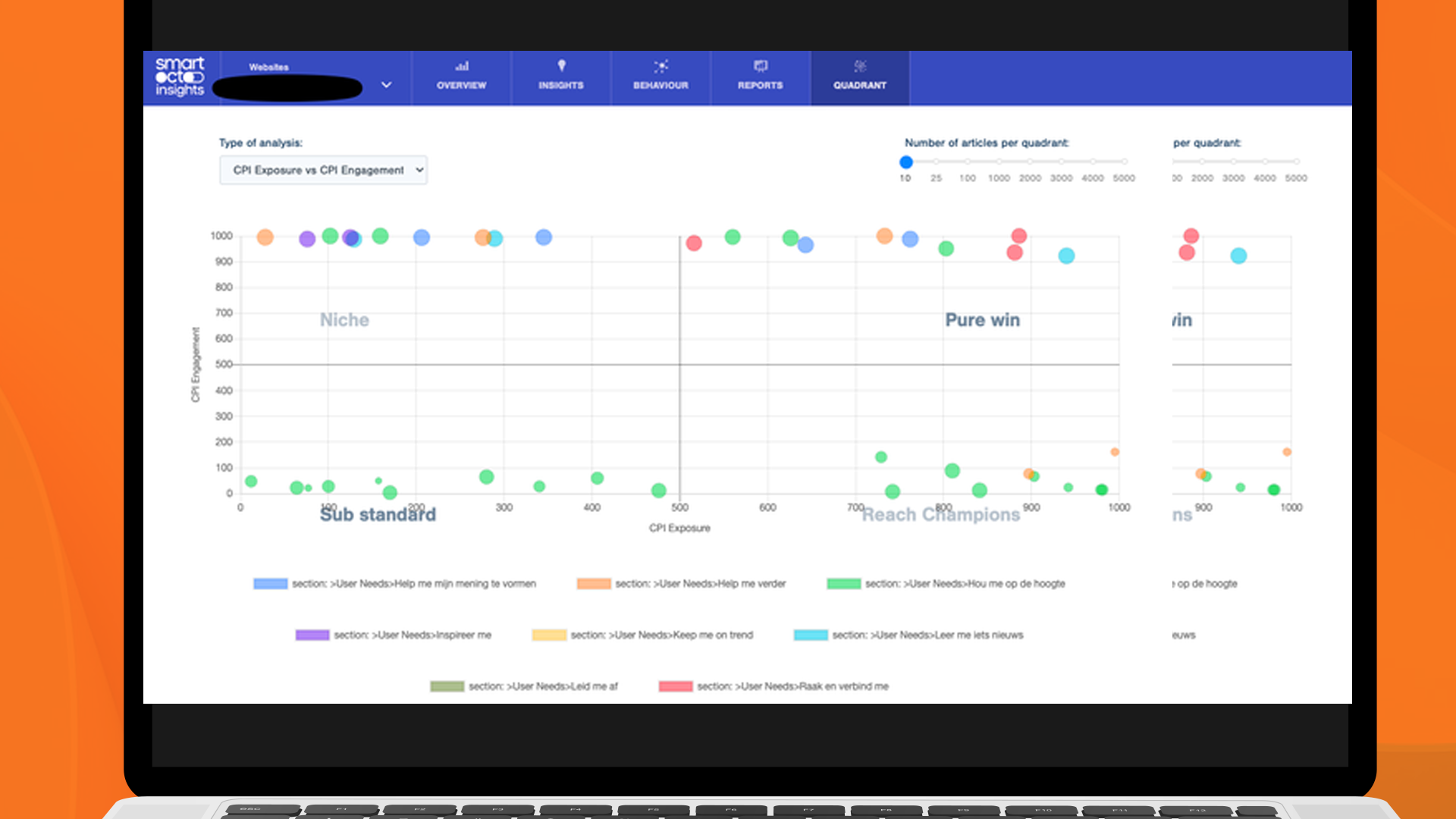 The Quadrant Model is a visualisation of page performance as shown in smartocto Insights. It gives editors an overview of what works for their audience - and what doesn't.