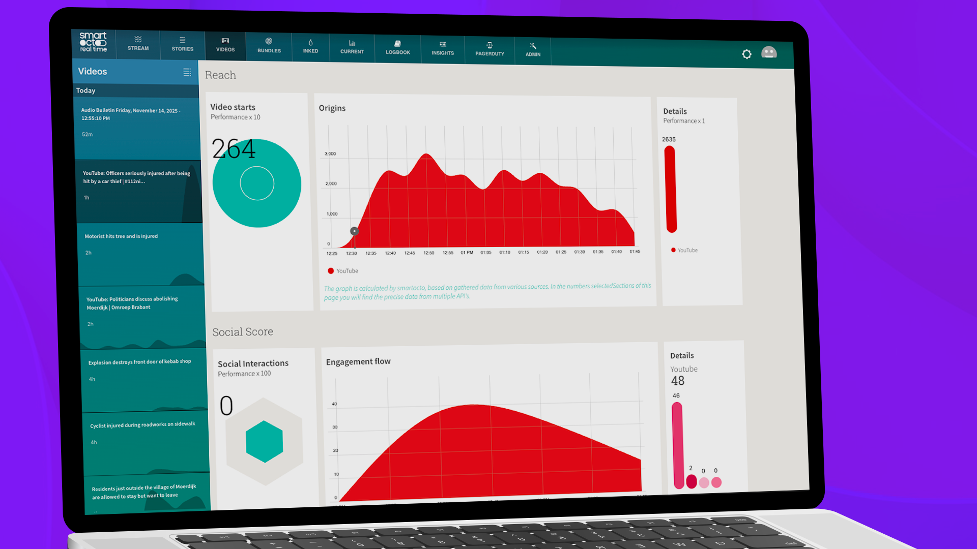 With video analytics, you can see the number of views and where the traffic originates. Which videos are the most popular? Which ones deserve more attention? Notifications can prompt the newsroom at the right moment to focus on actions that will improve video performance.